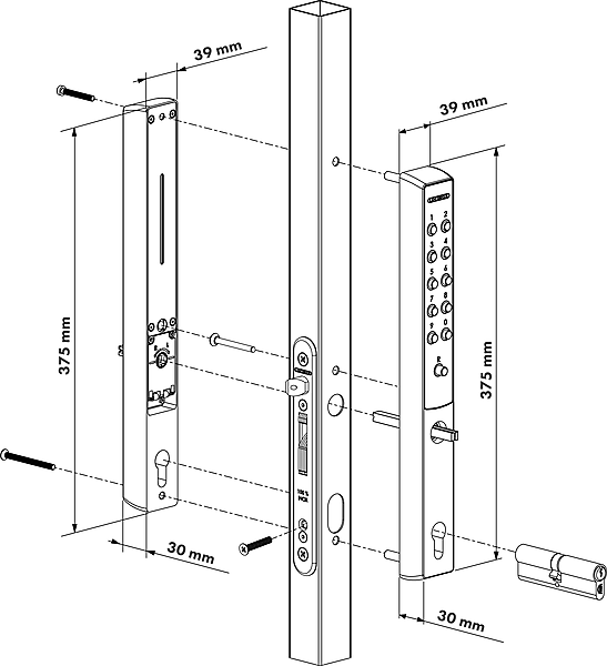 | Dubbelzijdig codeklavier of enkelzijdig (vrije uitgang) met afdekplaat | |