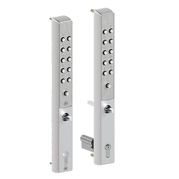 De pincode is gemakkelijk te wijzigen of te verwijderen, zowel in- als uitgangscode kunnen afzonderlijk worden ingesteld. Beschikbaar in twee configuraties: een dubbele uitvoering met een codeklavier aan beide zijden, of een enkele uitvoering met één codeklavier en een vrije uitgang.
