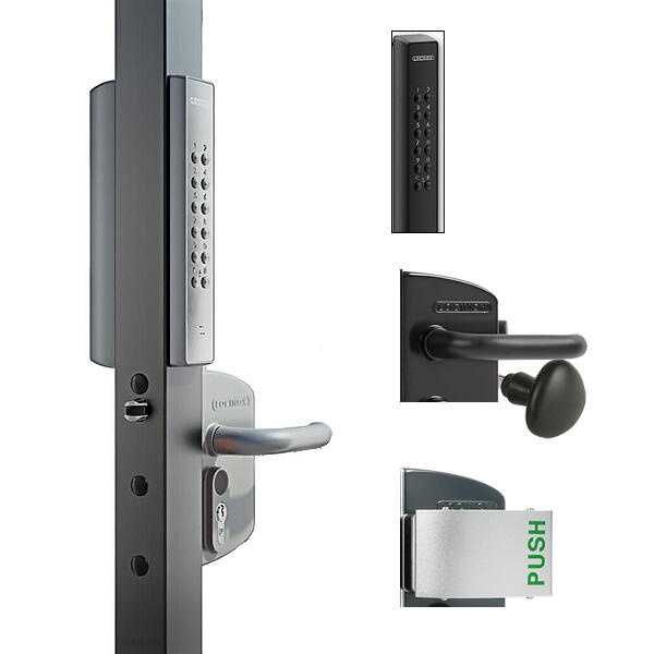 Het slot past naadloos in het modulaire Locinox-gatenpatroon. Je hebt de mogelijkheid om tot 100 pincodes te kiezen, wijzigen of verwijderen. Dankzij een energiezuinige batterijset, die tot 150.000 open- en sluitcycli meegaat in alle weersomstandigheden, is geen elektriciteitsvoorziening nodig. Beschikbaar in twee configuraties: dubbel met twee codeklavieren of enkel met n codeklavier en een vrije uitgang.