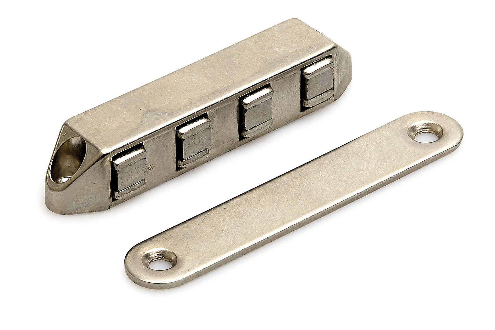 Magneetsnapper Super Polair 8 kg vernikkeld opbouw type 5203. Op zoek naar een magneetsnapper die garant staat voor een blijvend goede werking? In de industrie, interieurbouw en de luxe jachtbouw is het van belang dat magneetsnappers doen wat er van ze verwacht wordt. Deze sterke opbouw magneetsnapper 'Super Polair' is dan ook een perfecte keuze. Deze magneetsnappers hebben een magneetkracht van 8kg en zijn voorzien van hoogwaardige permanente magneten.