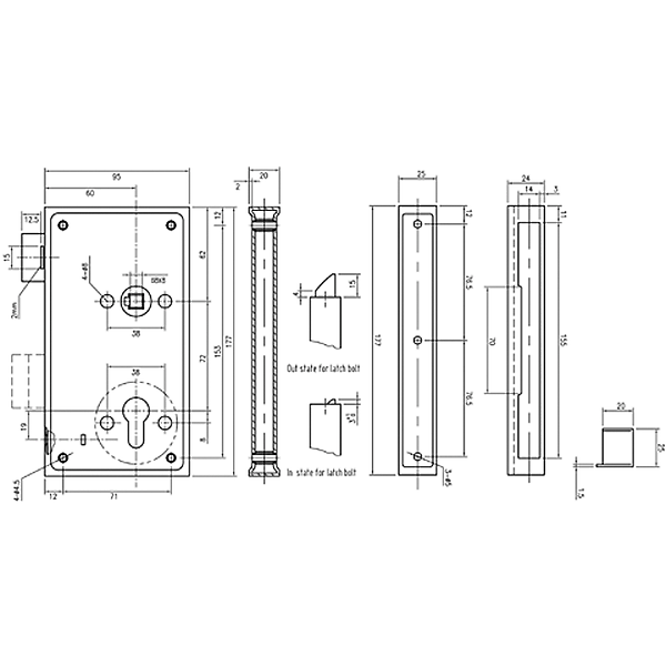 MAUER 3370 opbouw poortslot PC72 Doornmaat 60mm Zwart