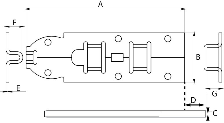 Plaatschuif vlak 60 mm verzinkt. Op zoek naar een schuifslot als hoofdsluiting van een konijnenhok of rommelschuurtje of juist als extra vergrendeling op een tuinhek of schuurdeur?
