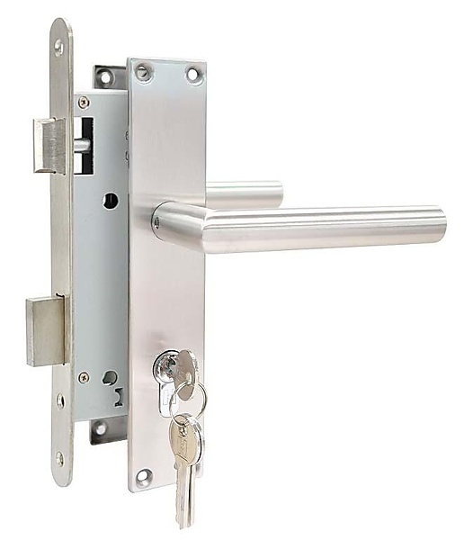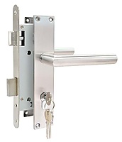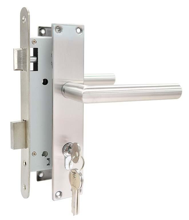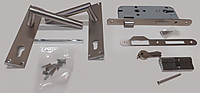 Poortslot RVS complete set met rechte schilden met rechte kruk PC85