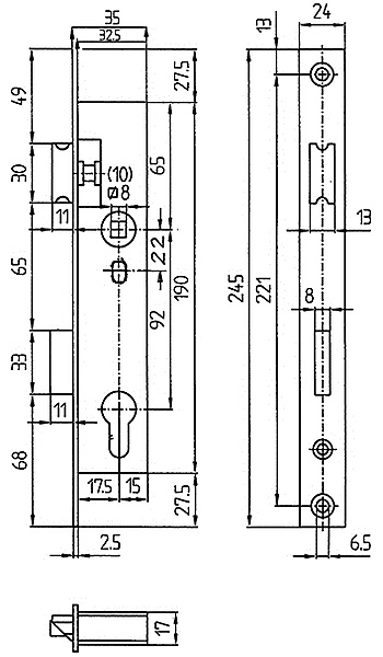 | Voorplaat | 24 x 245 mm |