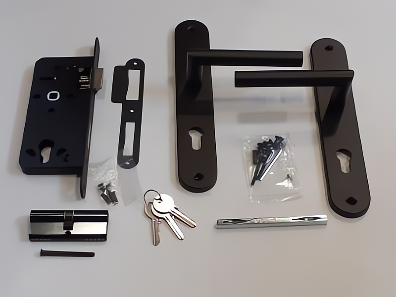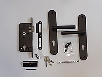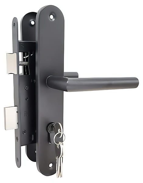 Poortslot zwart complete set met afgeronde schilden met rechte kruk PC72