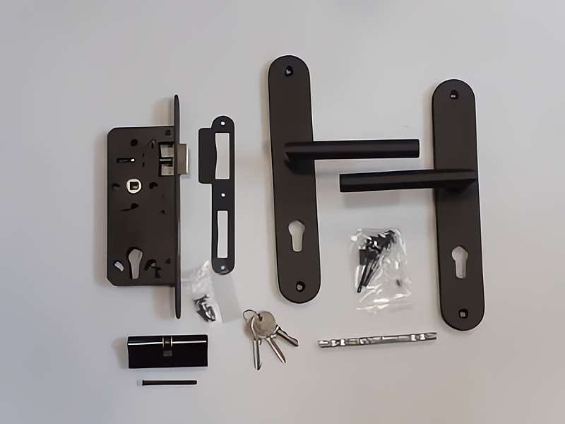 | RVS voorplaat en RVS sluitplaat in zwarte structuurcoating | |
