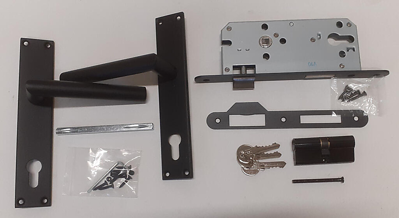 Poortslot zwart complete set met rechte schilden met rechte kruk PC85