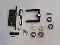 Poortslot zwart complete set met rozetten en rechte kruk PC85