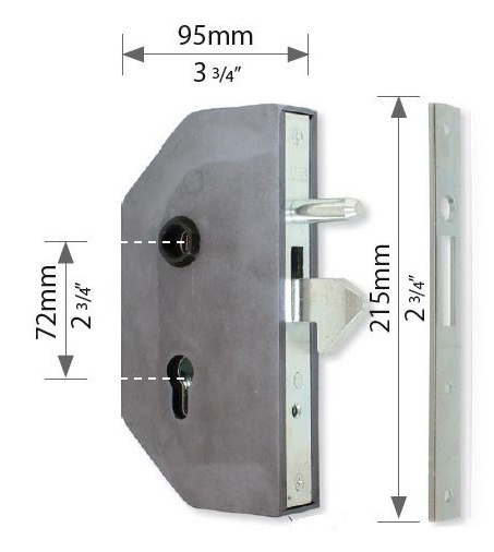 Slotkast staal met schuifpoortslot inclusief sluitplaat van Grande Forge, tbv profiel cilinder, kastbreedte 40mm