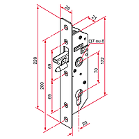 Schuifpoortslot met hefbout doornmaat 20mm PC70mm. Insteekslot voor schuifpoorten met pen welke het optillen of liften van de poort tegen gaat.