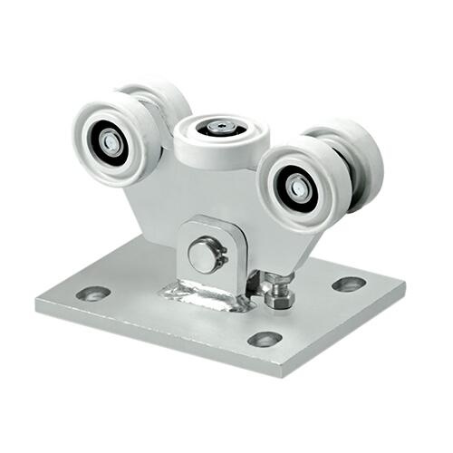 Comunello wielstelsel 350 voor looprail CGA-345 aluminium. Wielenblok verkrijgbaar in 2 uitvoeringen voor de piccolo en de mini looprail met 5 nylon wielen.