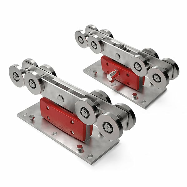 Comunello Intergrator master + slave wielstelsel set voor vrijdragende poort met tandwiel verkrijgbaar in diverse maatvoeringen. Met dit wielenstel kunt u de tandlat in de rail verwerken en middels de adapter bevestigen/verlassen aan het tandwiel van een schuifpoortmotor. Hierdoor word de tandlat onzichtbaar verwerk in de looprail van de schuifpoort. Verkrijgbaar voor Mini Piccolo en Grande schuifpoortrails.