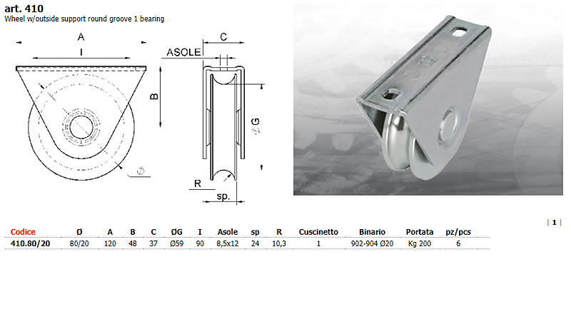 Loopwiel met gaffel en O-groef. Toepasbaar voor rolpoorten