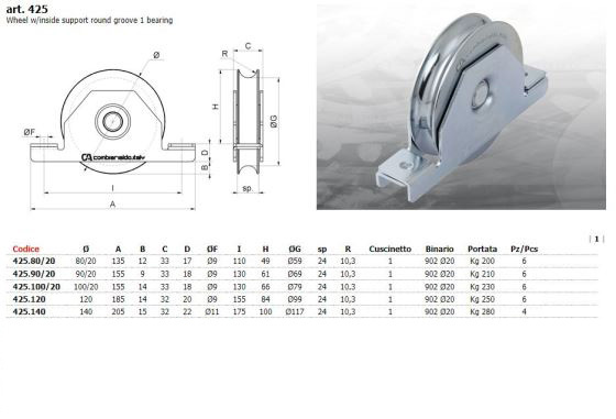 Loopwiel met gaffel en O-groef Toepasbaar voor rolpoorten verkrijgbaar in diverse maten.