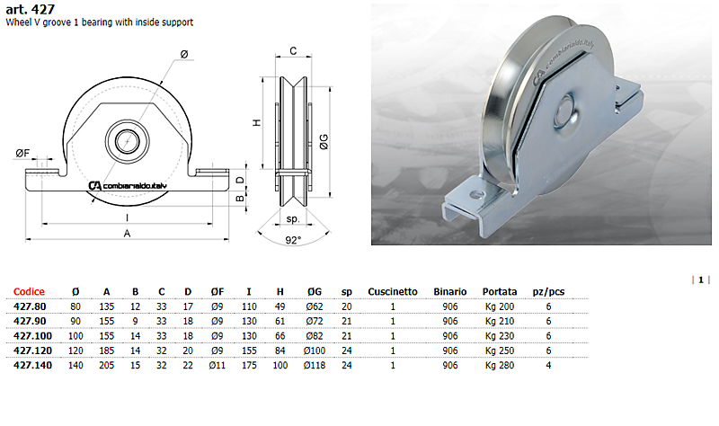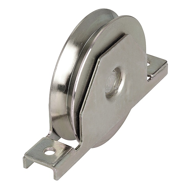 Loopwiel met gaffel en V-groef enkel gelagerd. Toepasbaar voor rolpoorten