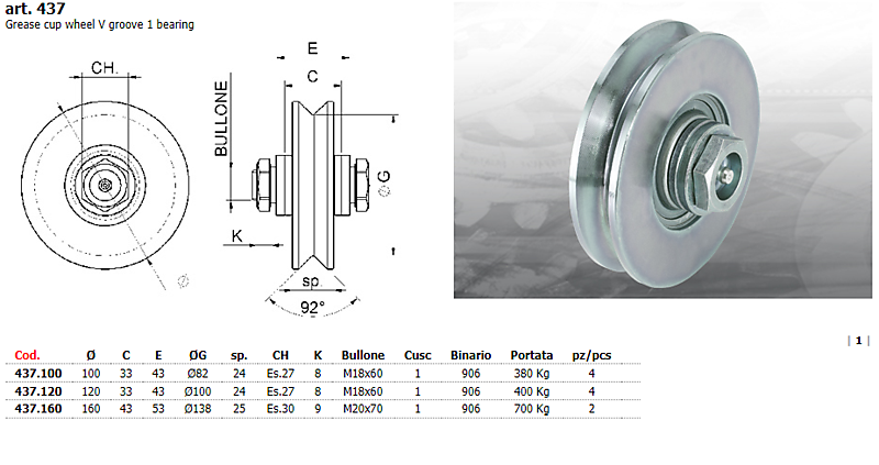 Loopwiel met V-groef enkel gelagerd in diverse afmetingen toepasbaar voor rolpoorten.