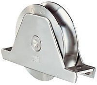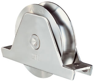 RVS Loopwielen inclusief steun dubbel gelagerd met ronde groef. RVS loopwielen voor onder andere gebruikt bij rolpoorten verkrijgbaar in diverse maten.