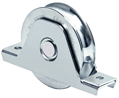Comunello loopwiel met steun en ronde groef enkel gelagerd elektrolytisch verzinkt . Ruim assortiment poortwielen in diverse afmetingen voor rolpoorten beschikbaar.