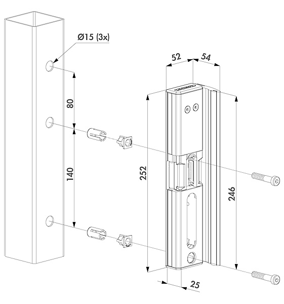 Eenvoudig te monteren elektrische slotvanger voor opbouw dankzij de gepatenteerde Quick-Fix bevestiging.