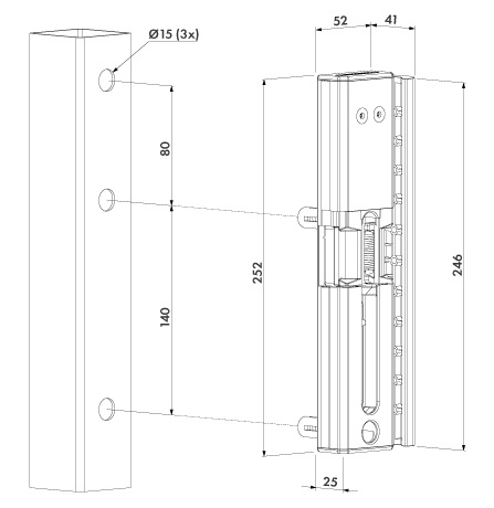 | Verstelbaar voor (vierkant) poortprofiel 40-60 mm | |