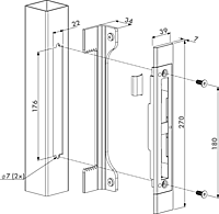 Locinox Slotvanger voor installatie in slotpatroon. Roestvrijstalen slotvanger dat in het boorpatroon van de insteeksloten kan worden geïnstalleerd voor de universele vleugelvoorbereiding van frames van 40 mm breed.