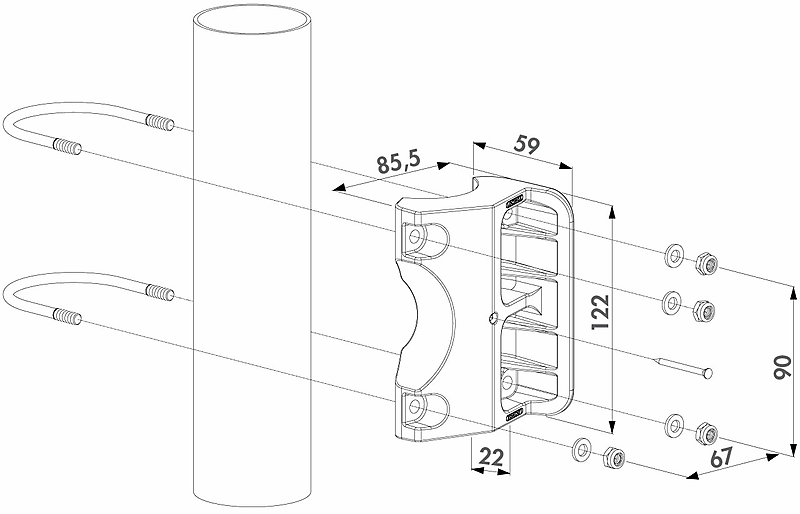 | 3. | Enkel voor ronde palen van 60 mm |