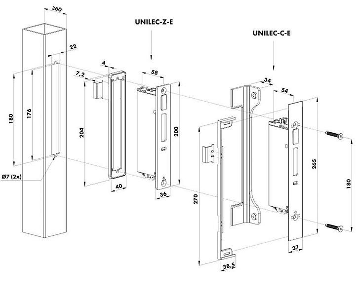 Locinox Unilec elektrische insteekslotvanger voor insteeksloten. Werk je poortinstallatie esthetisch en efficiënt af met UNILEC. Deze innovatieve elektrische slotvanger voor poorten duwt de dagpen van het slot naar buiten en biedt flexibele positionering in de paal. UNILEC past perfect in de UNIWING-profielvoorbereiding en wordt eenvoudig met het CLICK-IT-systeem bevestigd. Dankzij de strakke afwerking beperk je de afstand tussen poort en paal. De slotvanger werkt op 24V DC en is beschikbaar met of zonder slagplaat. Extra veilig dankzij de Fail-Close-functionaliteit.