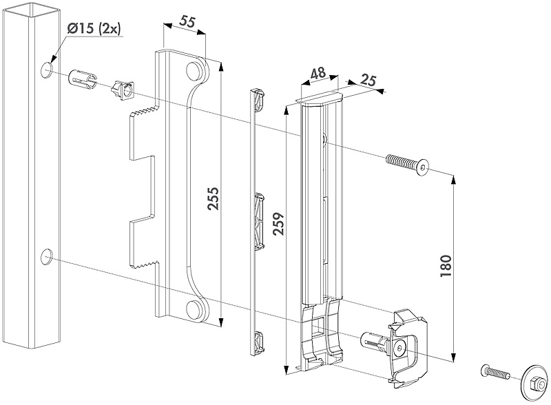 Roestvrijstalen veiligheidsslotvanger afgewerkt met polyamide voor metalen, aluminium en PVC poorten. Het gepatenteerde roestvrijstalen verankeringssysteem verhindert het uit elkaar trekken van de poort. Ontwikkeld voor het Fortylock insteekslot. De unieke Quick-Fix bevestiging zorgt voor een snelle en sterke bevestiging.