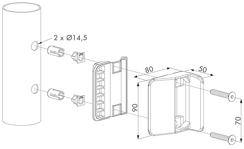 | Slotvanger in polyamide voor bevestiging op een ronde paal ø 60 mm | |