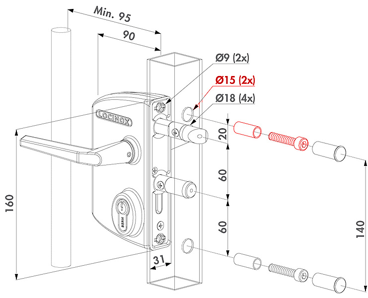 t.b.v. Locinox poortsloten zoals het Industrieel poortslot, zwembadslot of oud model poort sloten.