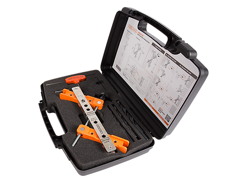 Handige alles-in-één set voor het perfect in center boren van de gaten voor Locinox sloten en slotvangers. De koffer bevat een boorhulp die zich stevig rond zowel ronde als rechthoekig profielen klemt en een perfecte centrering en uitlijning van de nodige gaten garandeert. Daarnaast bevat de koffer alle toebehoren om sloten en slotvangers in een minimumtijd te installeren en af te regelen.