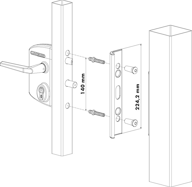 | Shield wordt heel eenvoudig op het opbouwslot bevestigd en is beschikbaar voor 40-60 mm poortkaders | |