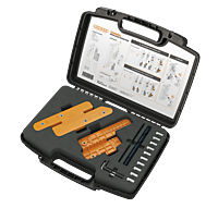 Gereedschapskoffer met de nodige tools om snel en efficiënt de poortsluiters te installeren. De gereedschapsset garandeert een perfecte uitlijning van de poortsluiter en de poort.