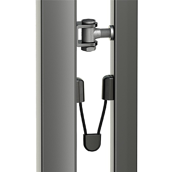 De B-Safe veiligheidskabel houdt de poort vast mocht één van de scharnieren breken.