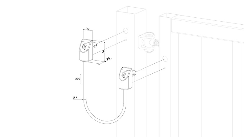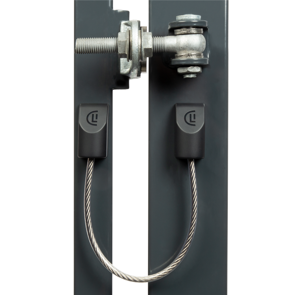 De U-Safe veiligheidskabel houdt de poort vast mocht één van de scharnieren breken.