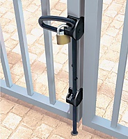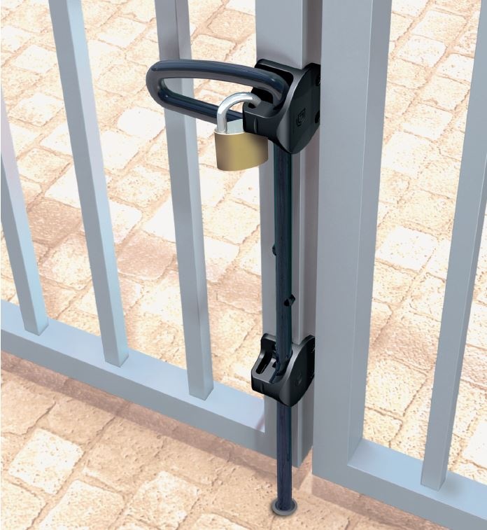 Q-Bolt poortgrendel voor op houten kunststof en metalen poorten. economische poortgrendel. geleverd exclusief grondpot en exclusief hangslot. Deze zijn apart bij de grondgrendel bij te bestellen. met mogelijkheid om af te sluiten met hangslot.