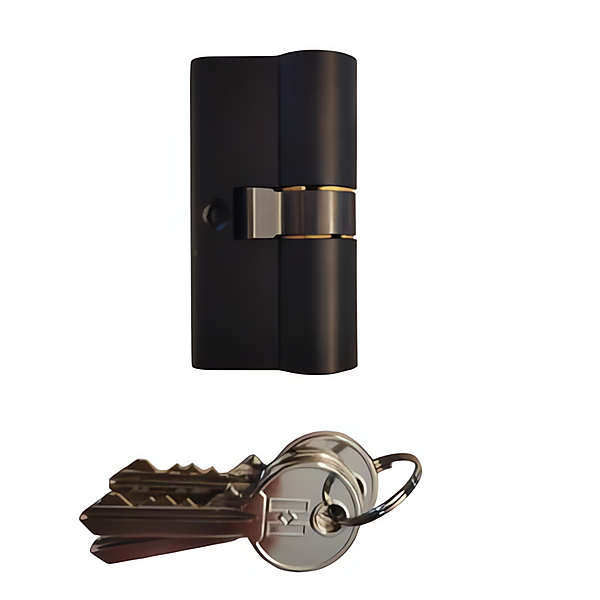 Zwarte cilinder 30/30mm toepasbaar op poorten inclusief 3 sleutels. Standaard cilinder geheel zwart in standaard maat 30/30mm