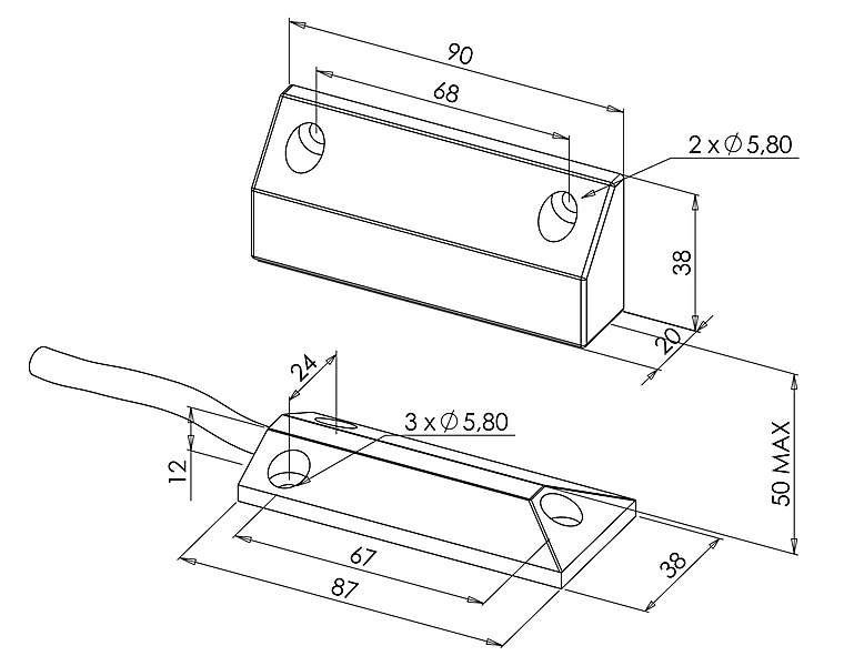 Magneetcontact MS911/CLW2 No/Nc. De schakelafstand van de MS911 contacten is max. 50mm. Zowel No als Nc te gebruiken. Geschikt voor o.a. roldeuren poorten garagedeuren. (Dit magneetcontact is vergelijkbaar met de aritech DC108 magneetcontacen.)