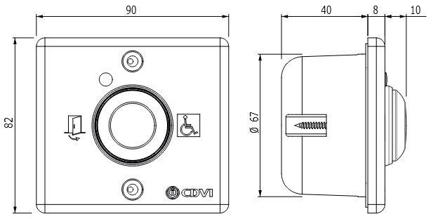 CDVI Drukknop voor uitgang voorbekabeld BPCHOC65AV