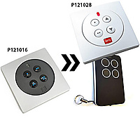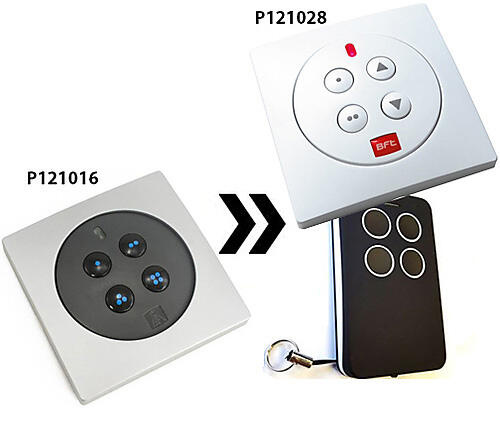 BFT RB Draadloze zender muurbevestiging P121016 is niet meer leverbaar en vervangen door de P121028 MIME PAD (de witte met het rode BFT logo). 433,92MHZ Rolling code zender