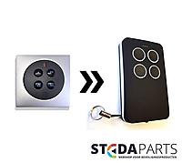 Wanneer u onze universele stedaparts zender selecteert en besteld en niet de originele dan krijgt u onze zwart met witte stedaparts zender met 4 drukknoppen / kanalen.