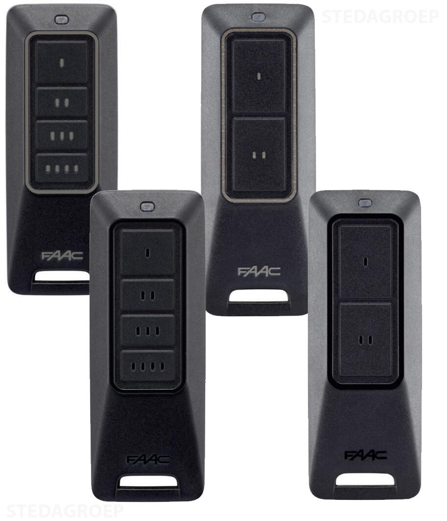 FAAC Handzender 433-868 MHz FDS en FDS BD Systeem. Gebruiksfrequentie 433,92 - 868,35 MHz. Type codering: FDS technologie. FDS = FAAC DIGITAL SIGNATURE: Radioprotocol gebaseerd op frequentiemodulatie met topprestaties op het gebied van bereik en batterijduur; radiotransmissie is beveiligd met AES-128 symmetrisch coderingsalgoritme met 128-bits sleutel. De authenticiteit van de afstandsbedieningen wordt geverifieerd door middel van een reeks op maat gemaakte FAAC-veiligheidscertificaten.