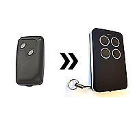Wanneer u onze universele Stedaparts zender selecteert en besteld en niet de originele dan krijgt u onze zwart met witte Stedaparts zender met 4 drukknoppen / kanalen.