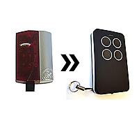Wanneer u onze universele Stedaparts zender selecteert en besteld en niet de originele dan krijgt u onze zwart met witte Stedaparts zender met 4 drukknoppen / kanalen.