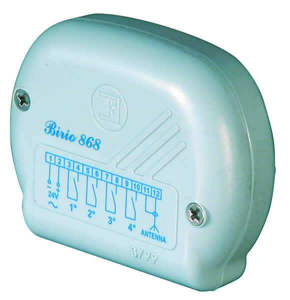 Opbouwontvanger BIRIO uit te breiden tot 4-kanaals ontvanger Uitneembaar geheugen zonder verlies van codes Ruimte in geheugen tot 1800 gebruikers met rolling codeProductspecificaties