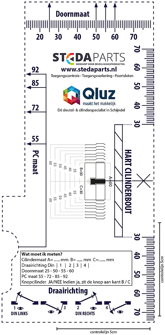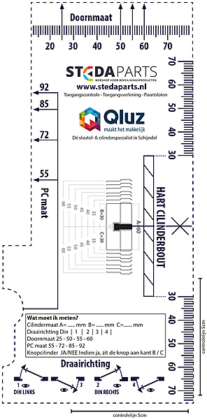 Cilindermeetkaart voor het opmeten van de juiste maten voor uw cilinders. is speciaal voor u ontwikkeld! .Dit om op een eenvoudige manier zelf het juiste formaat van uw cilinder te kunnen meten.