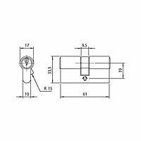 Dubbele 17mm europrofielcilinder voorzien van 6 sluitstiften per zijde en geleverd met 3 robuuste staal vernikkelde sleutels met unieke registratiecode