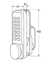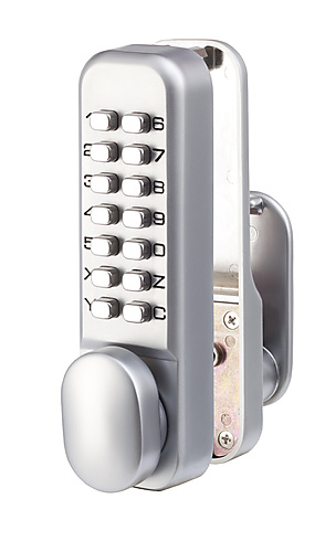 Maalsland 255 codeslot met vrijzetknop en dagschoot. Deze stijlvolle mechanische codesloten zijn eenvoudig op de deur te plaatsen en worden geleverd inclusief dagschoot met dagschootblokkering of opbouw nachtschoot en sluitkom. Door het intoetsen van de juiste code is de knop te bedienen en kan de deur worden geopend. Na het openen van de deur vergrendelt deze, bij de dagschootuitvoering, na het sluiten automatisch. Bij de nachtschootschootuitvoering moet deze, na het sluiten van de deur, handmatig op slot worden gedraaid. Vanuit de binnenzijde is de deur altijd via de kruk mechanisch te openen. Codebediening enkelzijdig met vrijzetfunctie