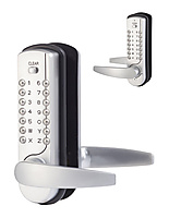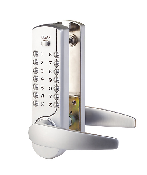 Maasland mechanisch Codeslot NK7500. Deze stijlvolle en robuuste mechanische codesloten zijn toe te passen op bestaande DIN sloten. Door het intoetsen van de juiste code is de kruk van het NK7500 codeslot te bedienen en kan de deur worden geopend. Na het openen van de deur vergrendelt het codebeslag deze na het sluiten automatisch. Vanuit de binnenzijde is de deur altijd via de kruk mechanisch te openen.