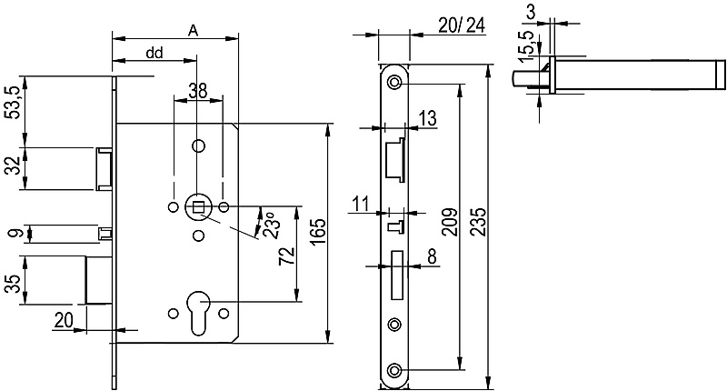 Zie productblad voor de afmetingen en de verdere verschillen tussen de Salto insteeksloten.